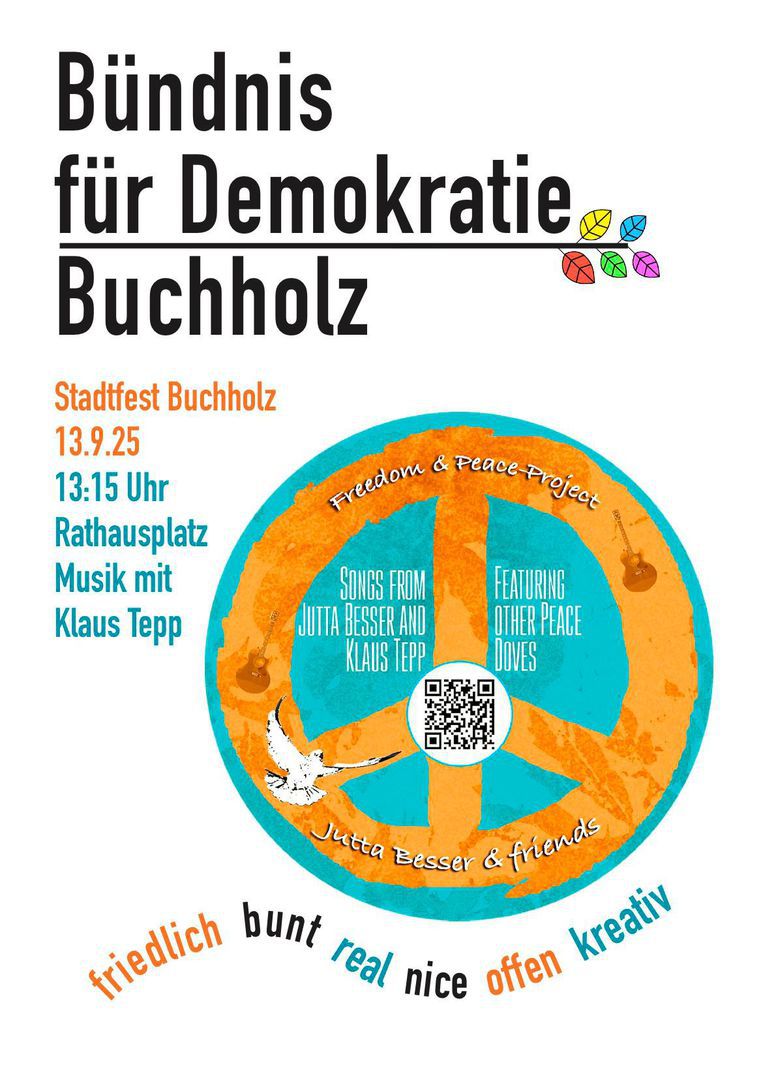 Am13.9.2025 fand ein kleines Konzert auf dem Buchholzer Stadtfest für das BÜNDNIS FÜR DEMOKRATIE BUCHHOLZ statt. Hier das Plakat und das Video dazu: